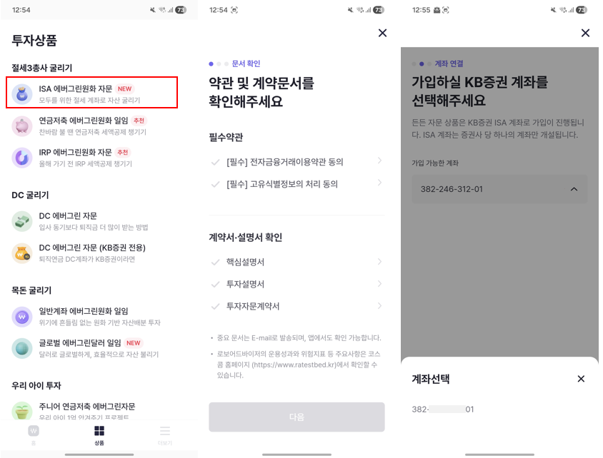 든든 앱 > 상품 > ISA 에버그린원화 자문 선택 > 상품 가입