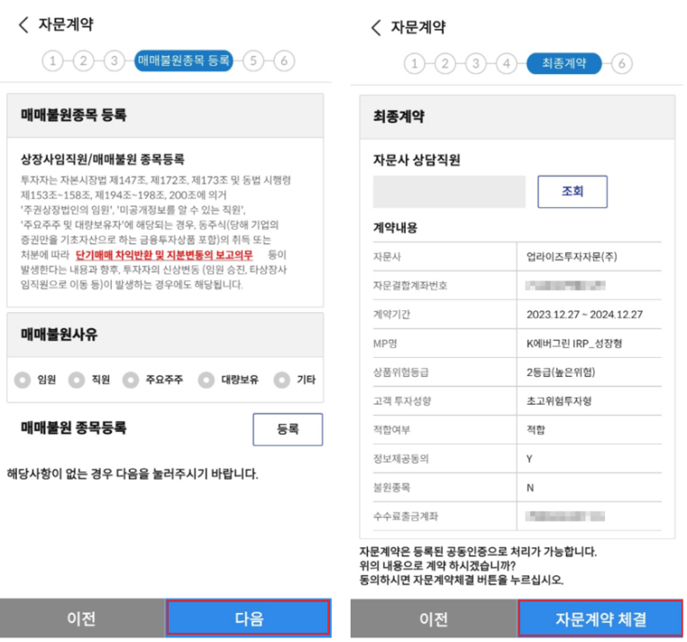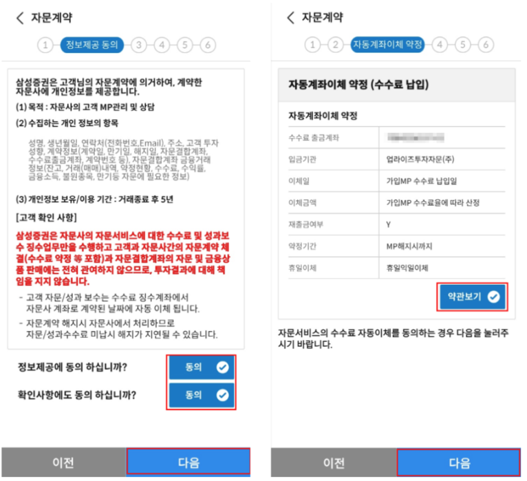 ① 자문계약 시 자문역, 자문보수, 자문계좌를 확인해 주세요.