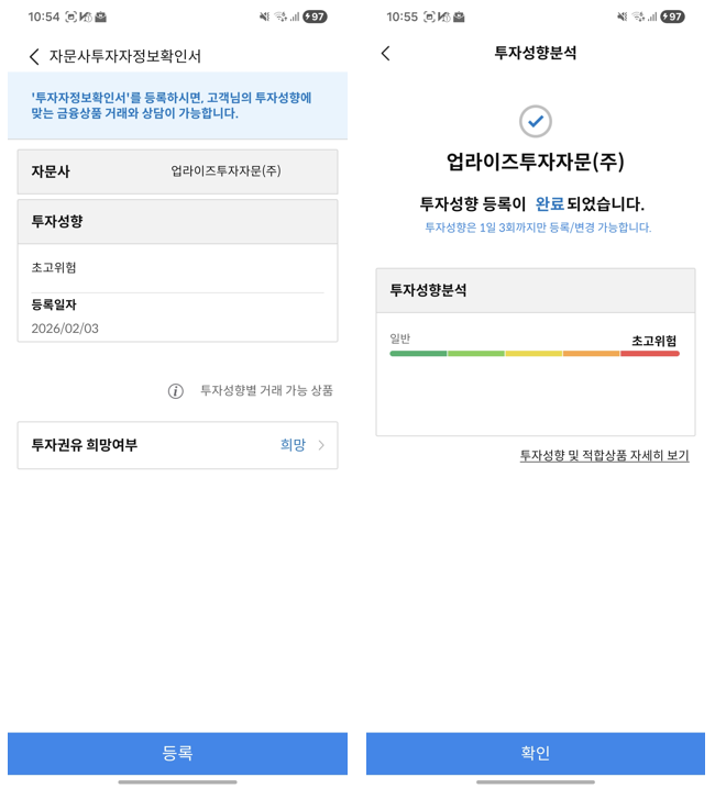 투자자정보 확인서 > 투자권유 희망여부 "희망" > 투자 성향 분석