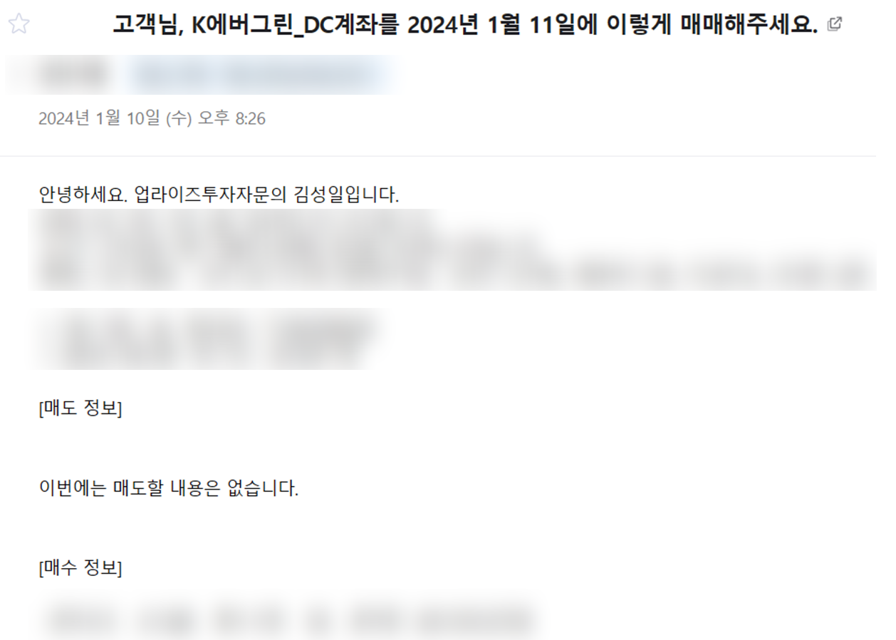 매매는 메일을 받은 당일 9:30 ~ 15:10 사이에 진행해 주시기 바랍니다.