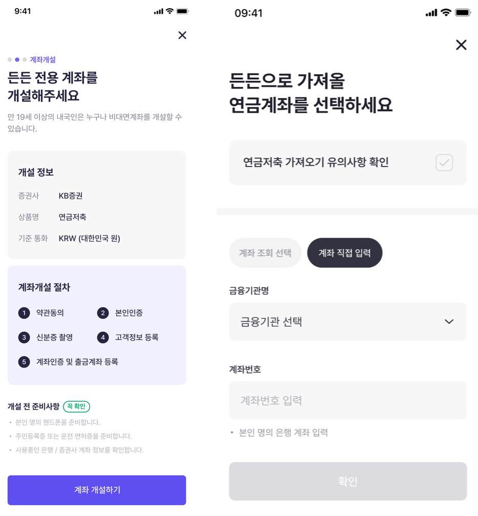 든든 앱에서 ‘연금저축 에버그린원화 일임’ 상품을 선택하시고, 화면 안내에 따라 진행하시면 가입이 완료됩니다. 복잡한 절차는 전혀 없습니다!