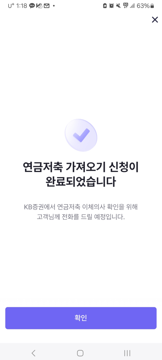 전화 수신 및 승인이 완료되어야 연금 이관이 진행됩니다. 전화 연결이 되지 않으면 이관이 불가하니 꼭 유의해 주세요.
